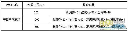 活动内容:活动期间,单笔充值达指定额度,即可获得丰厚奖励。