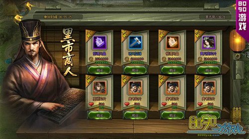 黑市商人,虽然称其为黑市商人,但其商品却很公道,更为难得的是,他并不会让顾客等待太久,总是那样不经意就带来了需要。黑市商人在玩家50级开启。 黑市商人开启后,玩家扫荡5次以上有很几率在行营的市集出现黑市商人。单次扫荡次数越多,出现概率越高。黑市商人出现后,会在1小时后消失。玩家可获得金宝盒、银宝盒、张飞碎片、太史慈碎片、郭嘉碎片等宝物。