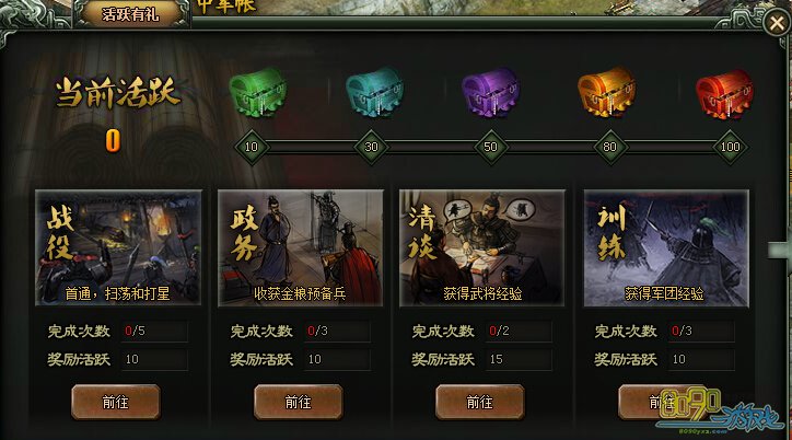 活跃可以说游戏内每天日常所需任务,玩家可以通过右上角‘活跃’图标中查看当前活跃进度。