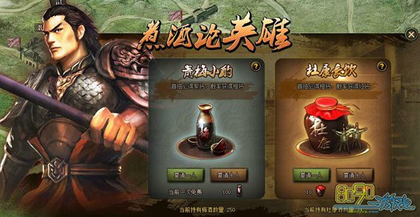三国以武将为名,煮酒论英雄是游戏中着重获得武将途径,煮酒分为青梅小酌、杜康豪饮。