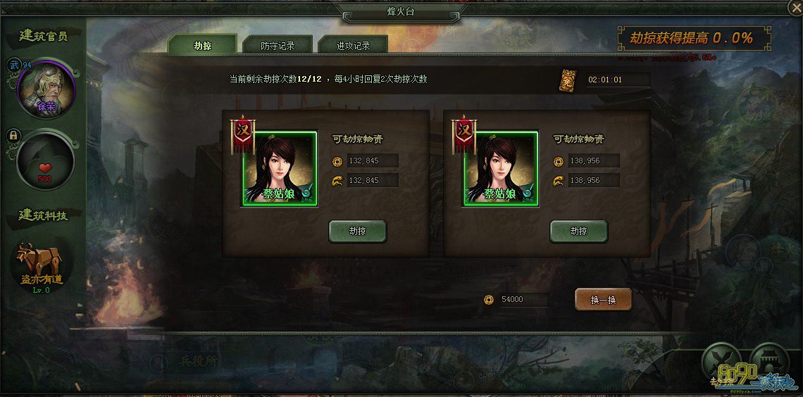 劫掠面板中,会随机出现2名与玩家战斗力接近的其他玩家信息。玩家可以指定其中一人发动劫掠,劫掠发动后,进入战斗。