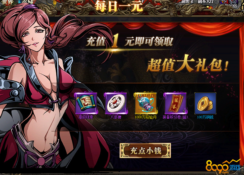 活动内容:开服期间每日累计充值达到指定金额即可领取丰厚奖励