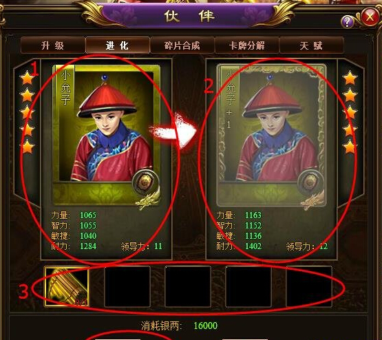 3 卡牌进化所需要的材料和银两