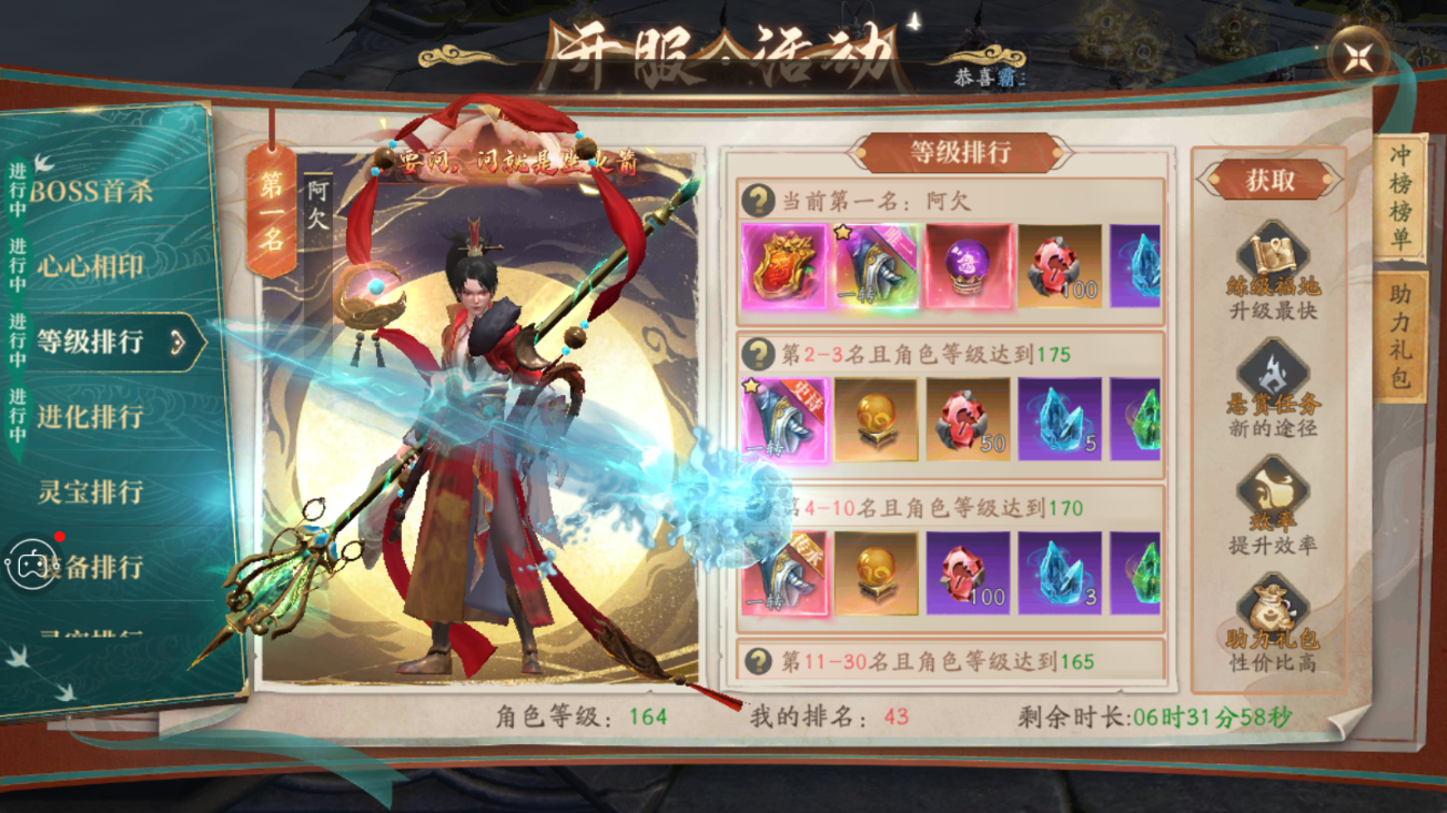 开服冲榜是开服前八天,每天根据当前的目标进行排名竞争获得最终奖励的活动,排名越高,奖励越丰厚。