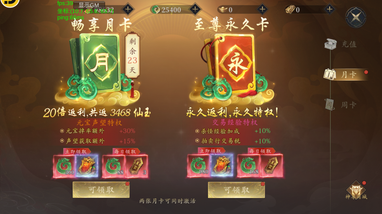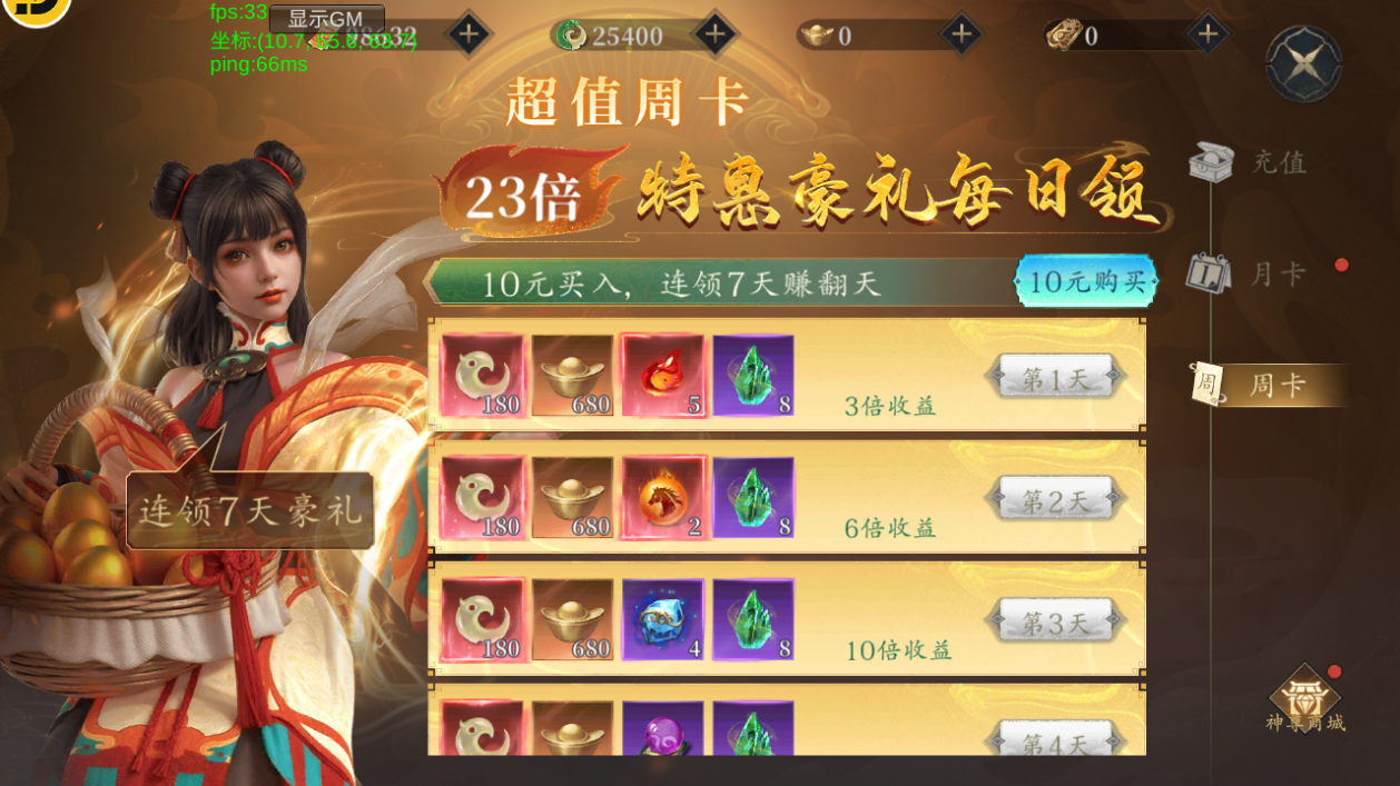 周卡是开服后开启的永久活动,购买周卡后连续7天每天可以领取奖励,十分超值!