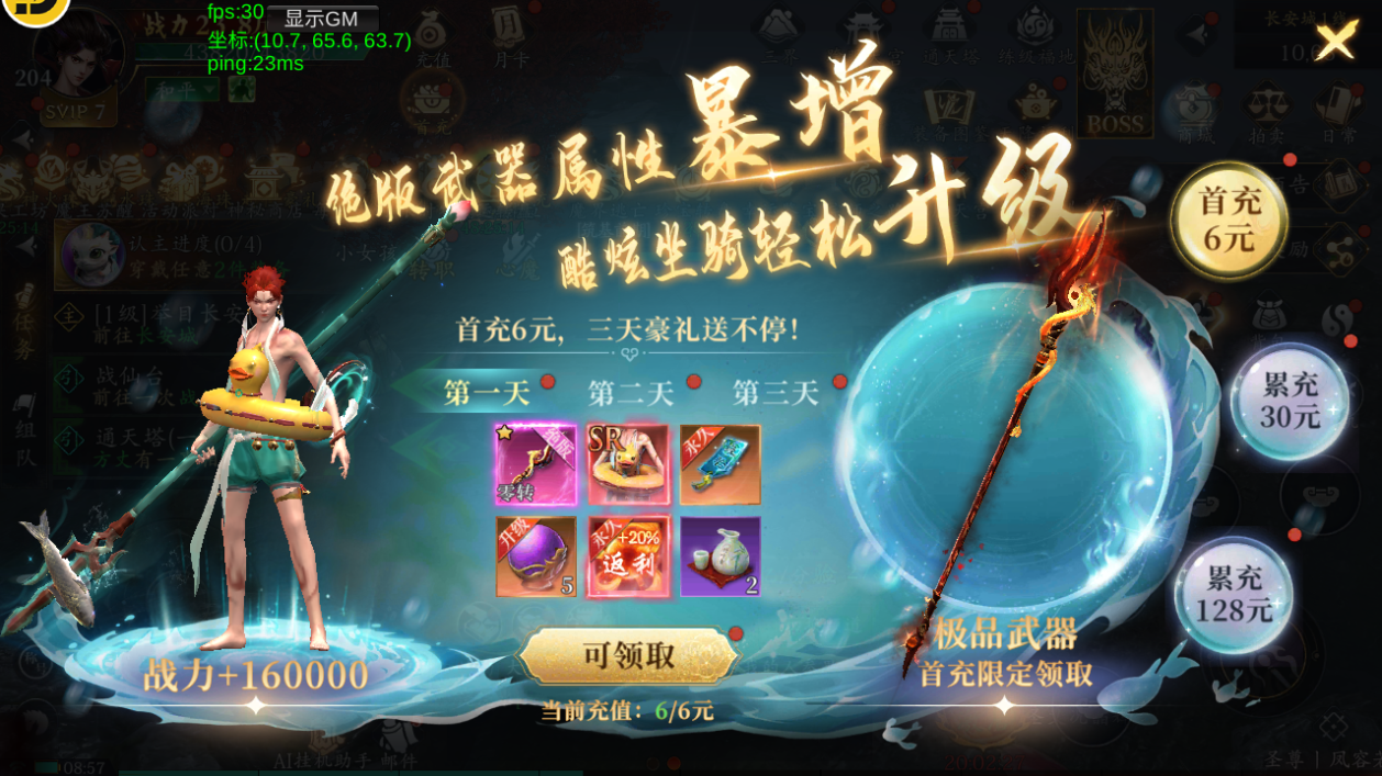 首充是开服后开启的永久活动,玩家首次充值后,可以连续领取三天奖励,充值数额足够还能进一步领取更多奖励!