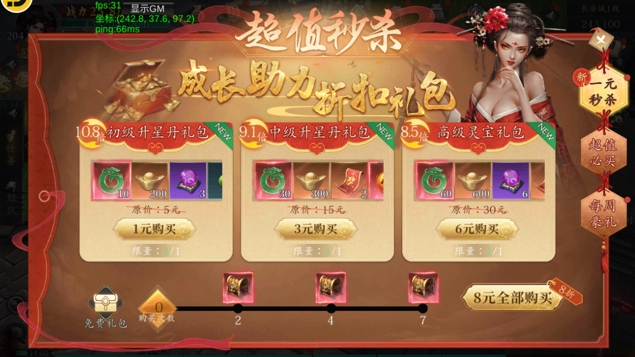 0.1折特惠是开服后开启的永久活动,玩家达到一定等级可以消耗仅仅1仙玉购买及其超值的礼包!