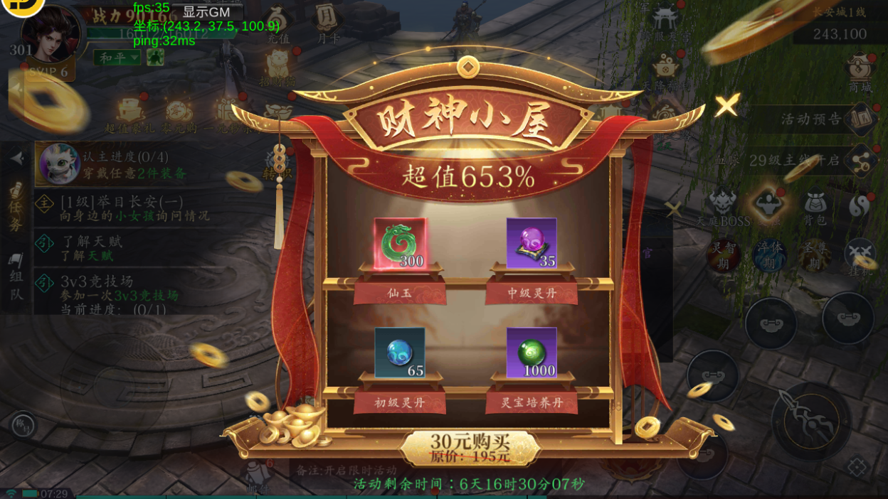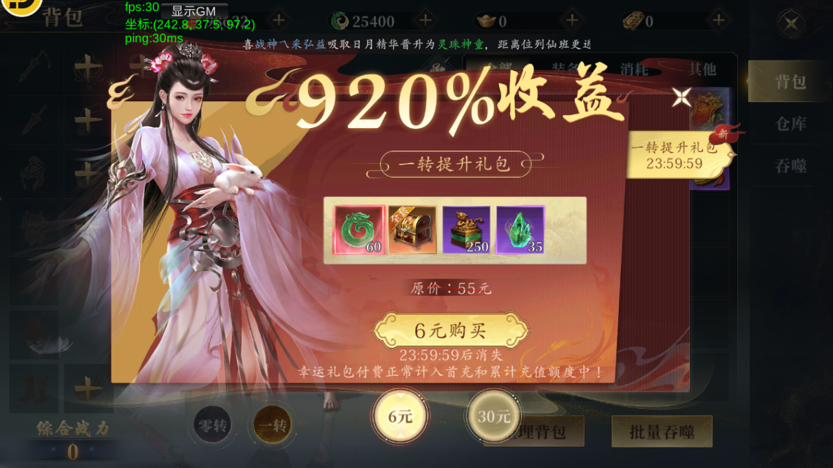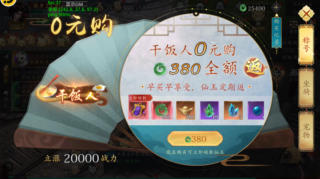 零元购是开服后开启的永久活动,可以通过消耗仙玉购买礼包,等待几天后,仙玉会通过邮件全额返还给玩家,从而实现0元购买礼包,机会不容错过!