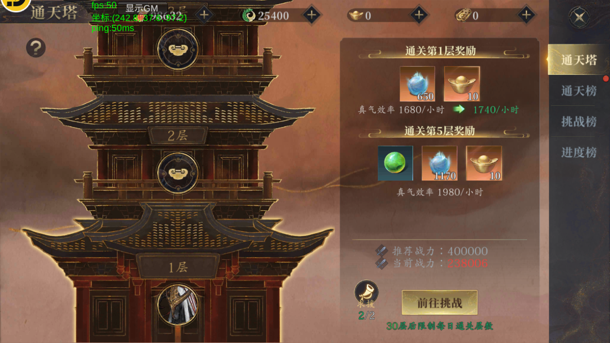 通天塔是开服后开启的永久活动,玩家通关通天塔可以获取真气,从而提高自己的修真等级,在pvp中压制其他玩家!