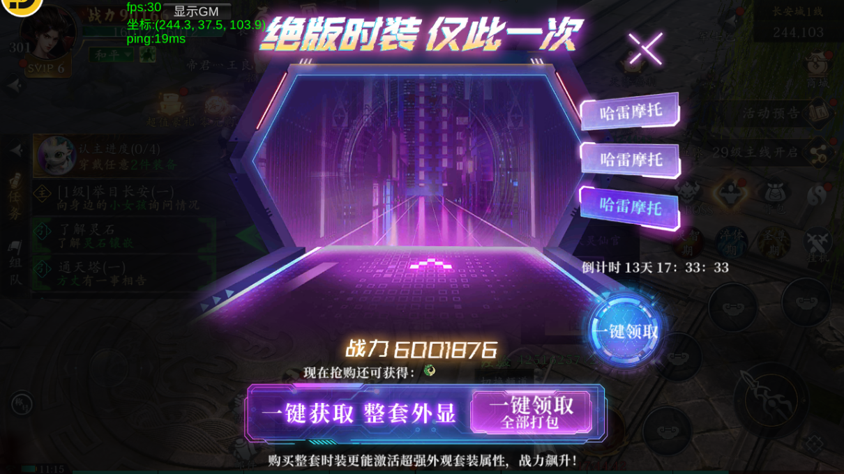 赛博时装是开服后开启的永久活动,玩家可以在此处购买超级炫酷外观赛博时装,其中包括坐骑,法阵和一整套时装!激活时装还能大幅度提升战力!时装存在购买时限,不容错过哦!