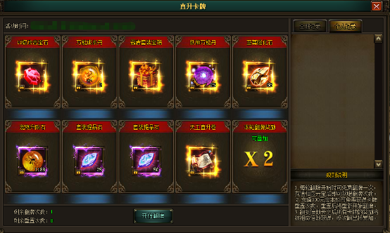 1.每轮翻牌开始时可免费翻牌一次,充值相应元宝后即可获赠翻牌次数。