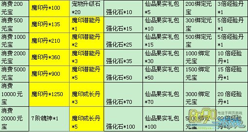 活动内容:玩家只要充值达到相应元宝数就能免费领取道具!