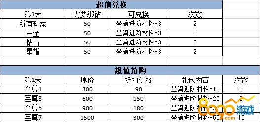 【活动内容2】:活动期间玩家消耗钻石可以超低折扣购买珍贵材料,至尊等级越高,兑换数量越多。