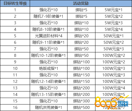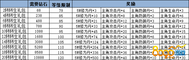 【活动内容】:转生礼包低折扣出售,还有属性丹相赠。