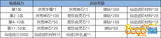 【活动内容】:仙迹总战力按获得的先后顺序进行排名,活动倒计时结束玩家即可在活动面板内领取对应排名奖励
