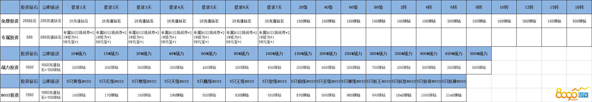 【活动内容1】:玩家可以通过投资计划参与返利大奖,投资花费的充值钻石立即原额返还!