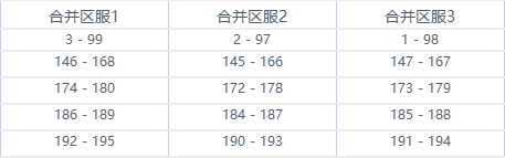 为了给玩家们提供更好的游戏体验并活跃游戏气氛,让玩家们结识更多的游戏伙伴、体验更多的挑战,将对部分区服进行合区处理。对以下服务器进行重组合服。合服完成后玩家可以通过原有账号登陆数据互通后的服务器.