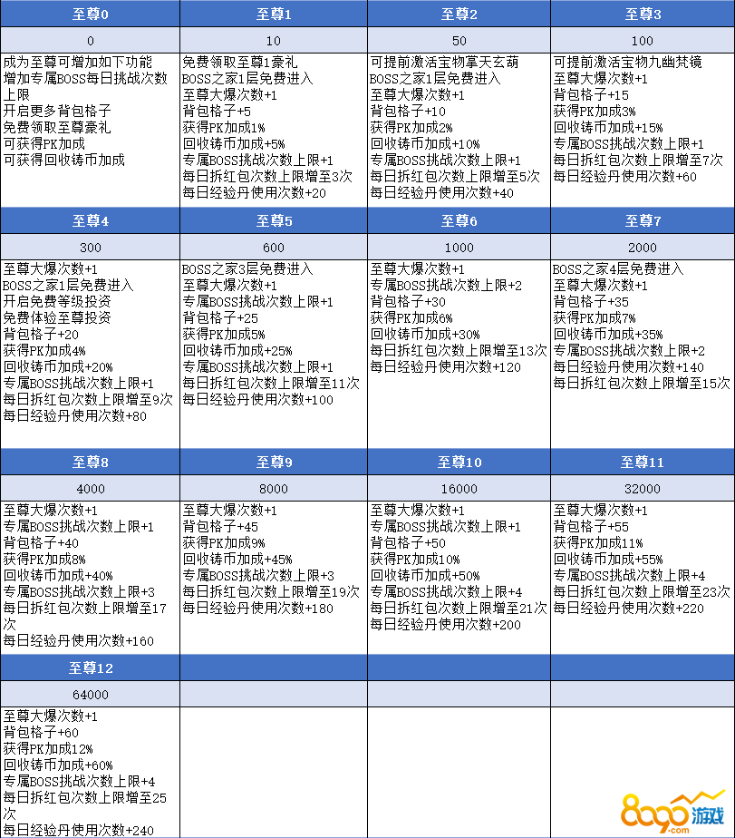 至尊激活条件(充值RMB/元)