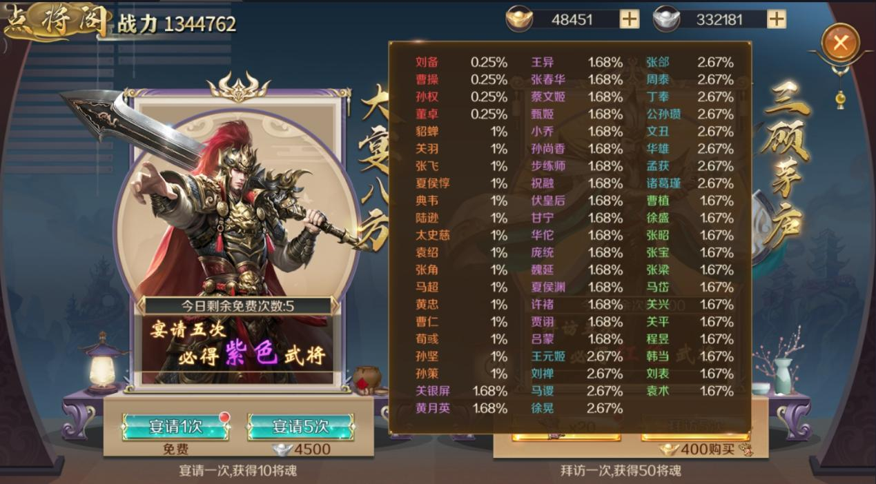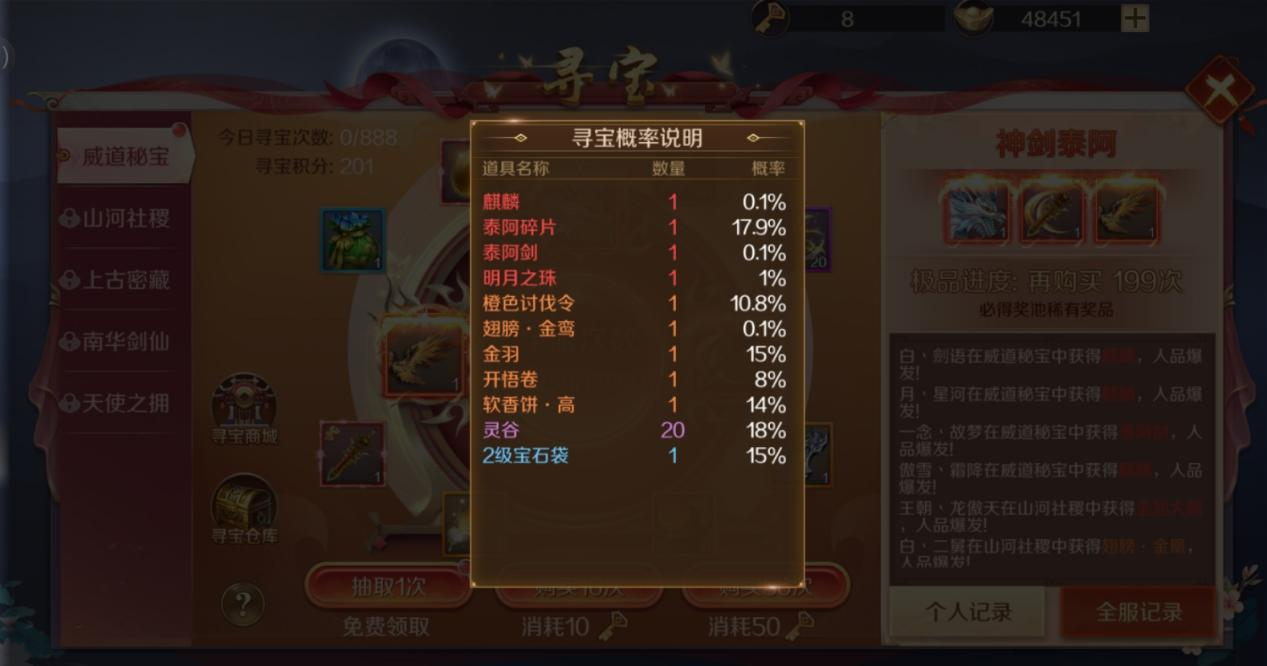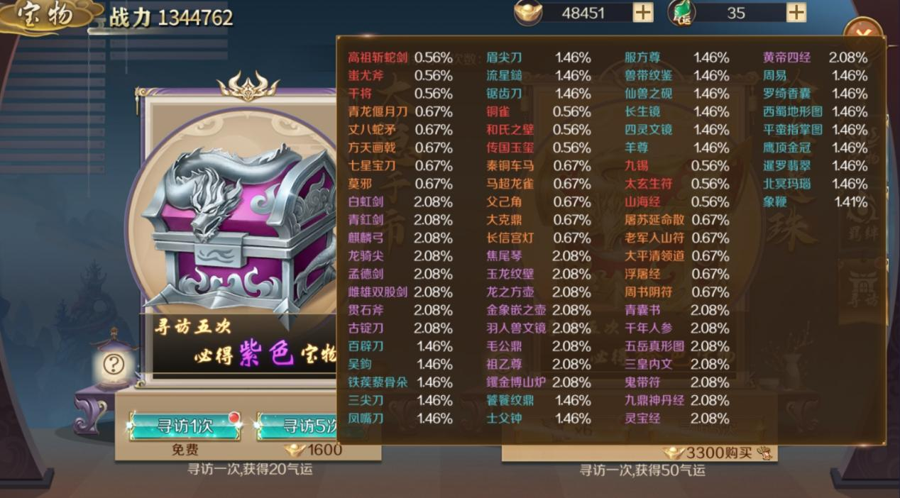 鸿图归来寻访、宴请、寻宝概率公示如下: