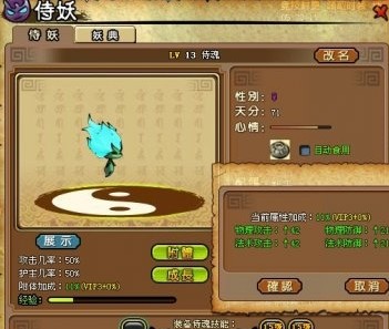 对这个宠物系统感兴趣的《画仙》玩家,只需要点击游戏界面中的侍妖按钮,就可以看到最初状太下的宠物的形象。《画仙》这个宠物系统最有意思的玩法就是,侍妖不仅可以直接参与到战斗中来,还可以通过俯身在《画仙》玩家身上来提高玩家的属性。玩家们如果想要将侍妖附身到玩家的身上,就可以通过附体的按钮来达成,此外玩家们还将看到这一操作之后可以提高的属性。