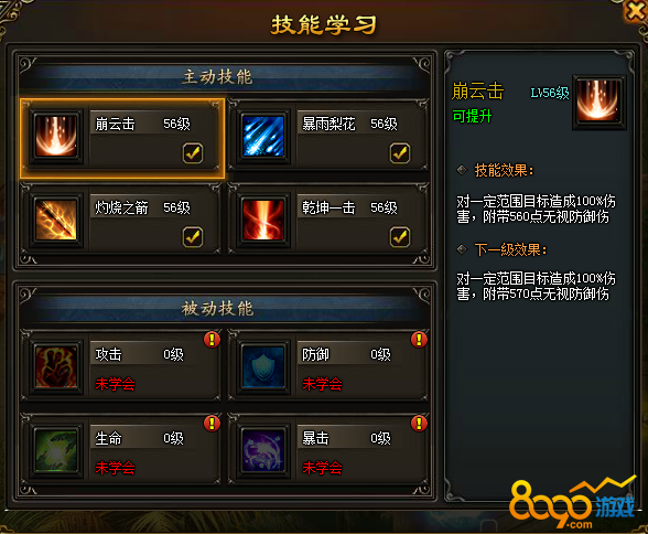 8090欢喜密探页游角色的四项技能等级与角色等级同步,我们需要注意的是被动技能的加点。被动技能加点只消耗金币,其实相对还是非常经济方便的,祈愿和财神副本都可以掉落大量金币,日常刷怪和副本也有很多加成。至于被动技能的四种加成:攻击、暴击、生命、防御。小编个人推荐主加攻击和暴击,其次是防御,毕竟金币有限,加点不能一条线端平,而且有一些限时副本的机制,并不允许皮厚高防的玩家花大量时间磨穿副本。