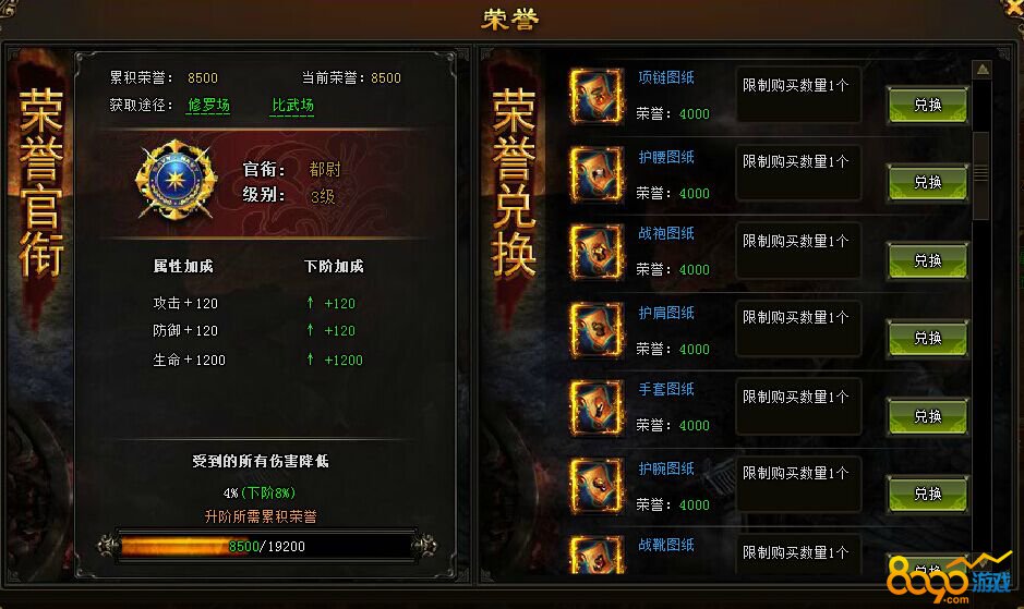 8090欢喜密探玩家会有一个最关注的重要问题,装备从哪里掉落?除了剧情任务赠送的紫色装备,跨服副本会掉落合成红色装备必备的轩辕图纸碎片,除此之外,参加比武场、修罗场活动则可获得荣誉,荣誉兑换得的橙色极品装备图纸,则可以升级一个对应部位的紫色品质装备。