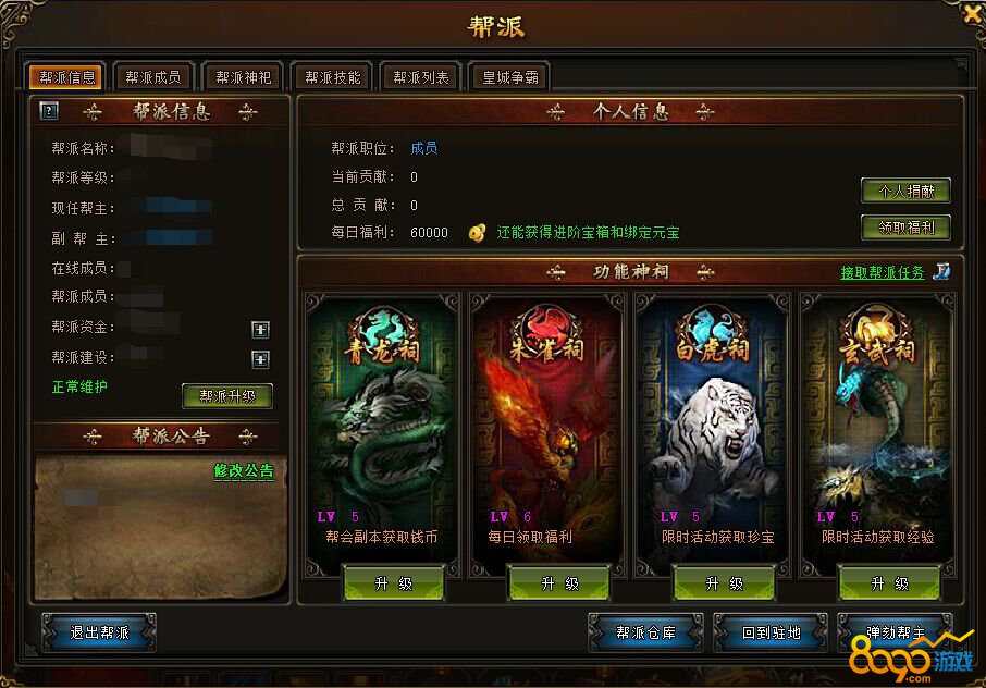 退出帮会后,帮会技能效果保留,帮会贡献清零