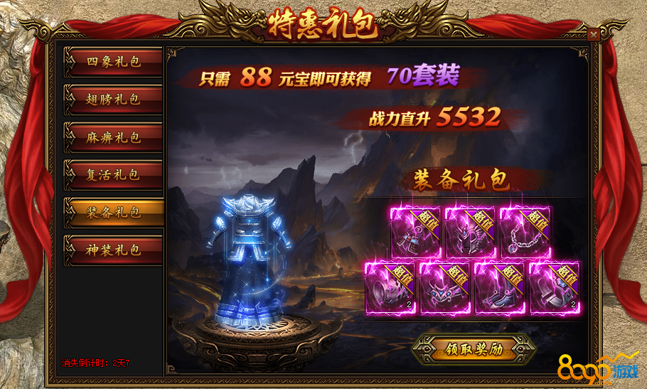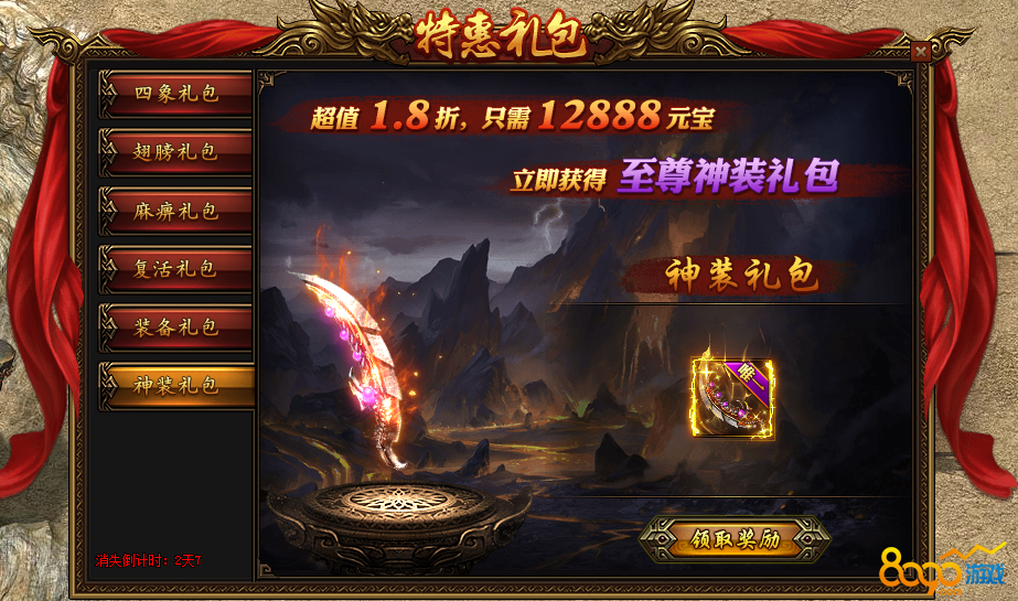 超值1.8折,只需12888元宝,立即获得至尊神装礼包