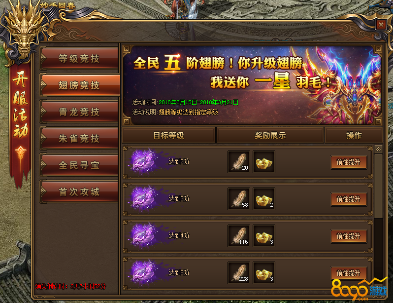 全民五阶翅膀,你升级翅膀,我送你一星羽毛