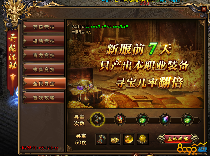 新服前7天,只产出本职业装备,寻宝几率翻倍