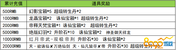 活动规则:活动期间充值满足条件可以领取对应的元宝奖励
