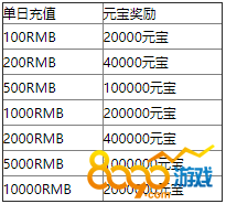 活动规则:活动期间充值满足条件可以领取对应的元宝奖励
