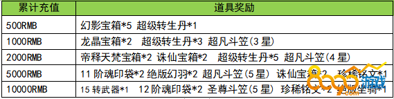 活动规则:活动期间充值满足条件可以领取对应的元宝奖励