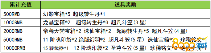 活动规则:活动期间充值满足条件可以领取对应的元宝奖励