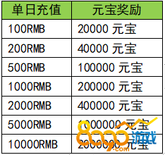 活动规则:活动期间充值满足条件可以领取对应的元宝奖励