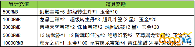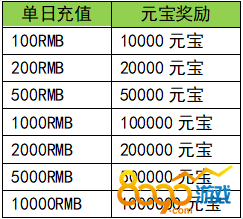 活动规则:活动期间充值满足条件可以领取对应的元宝奖励