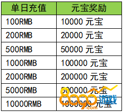 活动规则:活动期间充值满足条件可以领取对应的元宝奖励