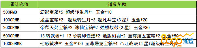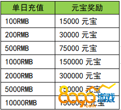 活动规则:活动期间充值满足条件可以领取对应的元宝奖励