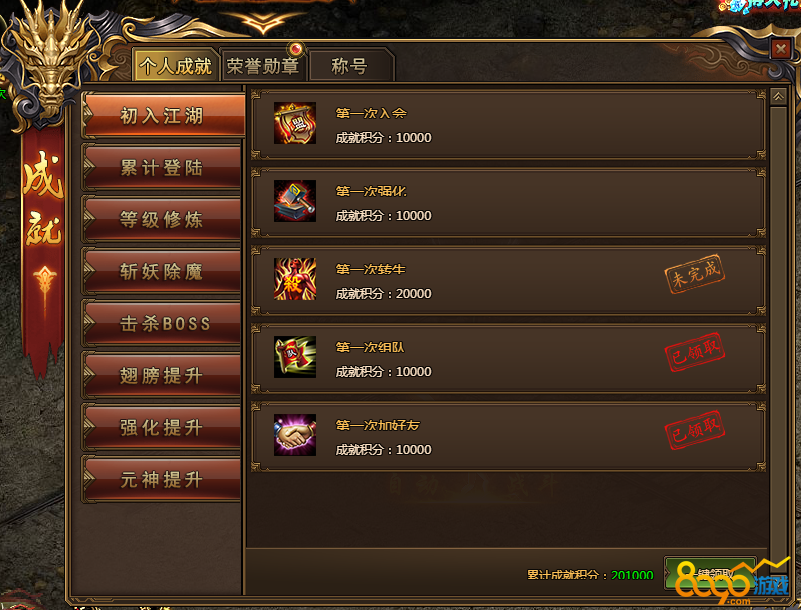 在这个上古世界中,你的财富有多少?实力能彪悍到什么程度?“成就系统”都能直接给你答案。从新手到最强战神,角色成长刻不容缓。现在就秀出战斗力,叱咤风云、威震江湖,享受王者的荣耀吧!
