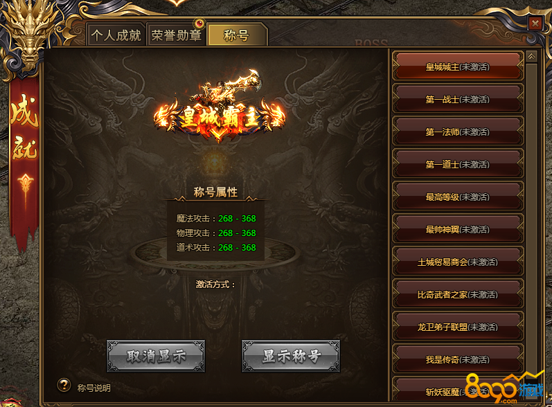 称号—使你更拉风、与众不同,让你在玛法大陆更标新立异。独具一格。