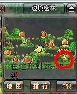 21级我们要来到边境密林在下面图片的位置升到25-27左右,不建议打28级的怪因为它会五行封印,打起来两费时间还浪费蓝。现在已经到如果是25级就去做几个20环的任务最多就做到19个,最后一个不要做或找找有爆八门的分享几次。