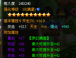 在装备里还有1个说起来不是很重要,但是确实很重要的情况,基本属性是装备的属性+天生+强化,天生比较不好加所以看着办就好,强化可是很重要的,他可能在物品的基本属性里要占一大截。