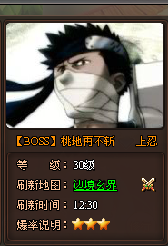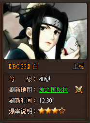 水木:作为火影世界的第一个BOSS,他可以说是很菜的,大家在到30级左右,打一个同级别的3阶宠物,带好大红拉面,有连斩的情况灭他不是问题,一般抗住他的攻击需要800左右的防御。一般杀他就是为了家族书和3阶忍犬。