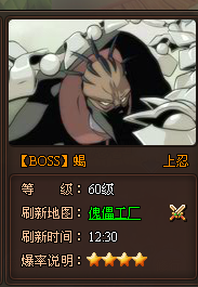 蝎:已经不是一般玩家可以击杀的了(RMB玩家除外),如果你是老手在你60级可能可以单挑。60级以前不组队就是靠纸鹤来磨。从君麻吕开始蛇手已经是作用很大了,当然还有解印,对付蝎最好是有3000以上的防御,不然后果会很悲惨,可能站都站不起来。