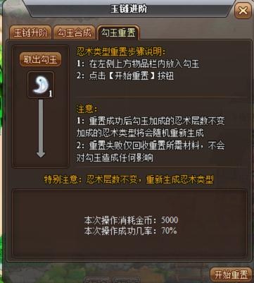 下面就是勾玉重置系统派上用场的时候了。现在更新了新内容之后的勾玉重置是不需要花费元宝购买道具了,你只要花少量的金币就可以在静音那里重置你的勾玉属性。