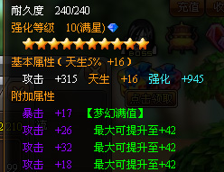 在装备里还有1个说起来不是很重要,但是确实很重要的情况,基本属性是装备的属性+天生+强化,天生比较不好加所以看着办就好,强化可是很重要的,他可能在物品的基本属性里要占一大截。