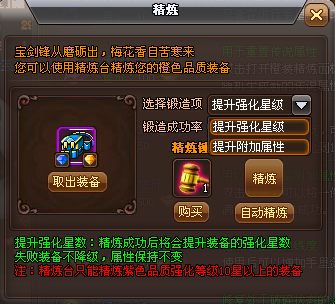 7.精炼成功,将会扣除1个精炼锤,装备将获得追加的附加属性;精炼失败,将会扣除1个精炼锤,装备没有变化。
