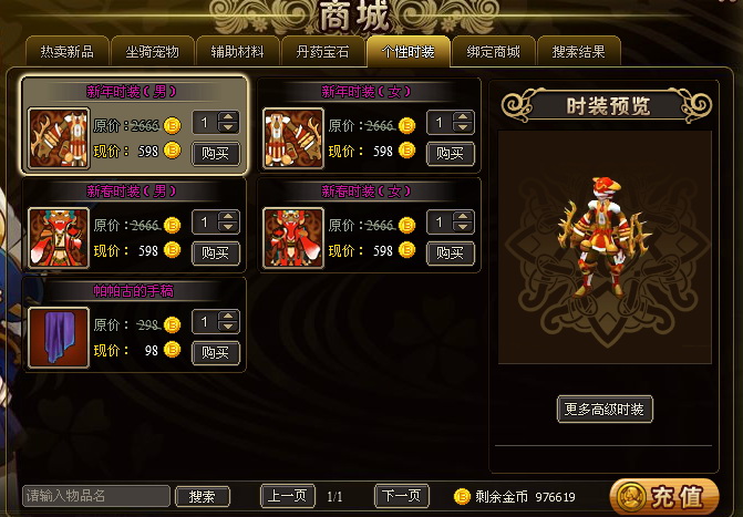 2)时装获得:商城新增“个性时装”购买后即可获得