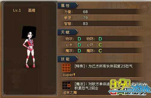 天赋:物攻D,物防D,必杀:D,必防:C,魔攻D