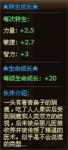 力量+0.3,敏捷+0.4,智力+0.4,生命+0。不错的提升,唯一令人遗憾的是生命成长没有提升。大部分鼓舞伙伴进阶后生命成长都增加到了+25,难道策划还打算开放乔巴的第三次进阶?